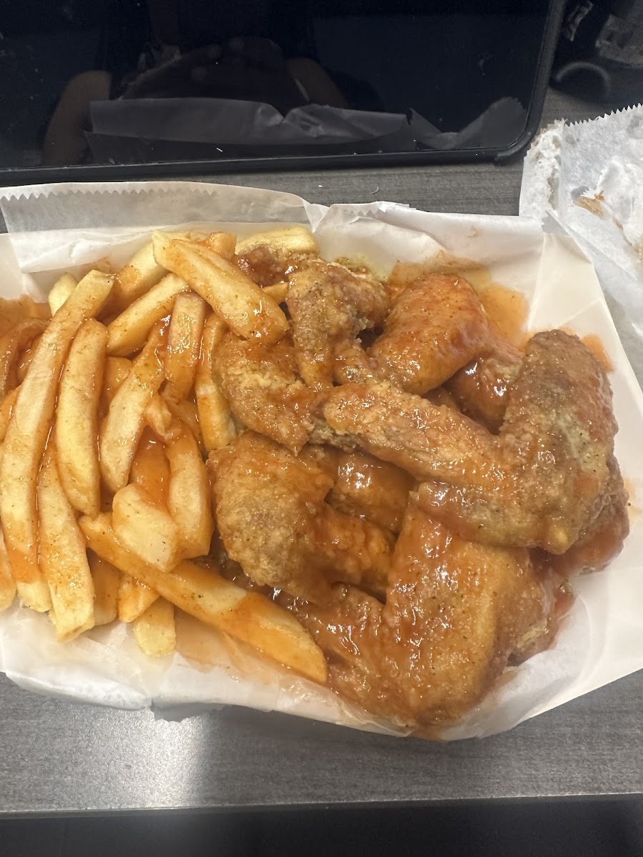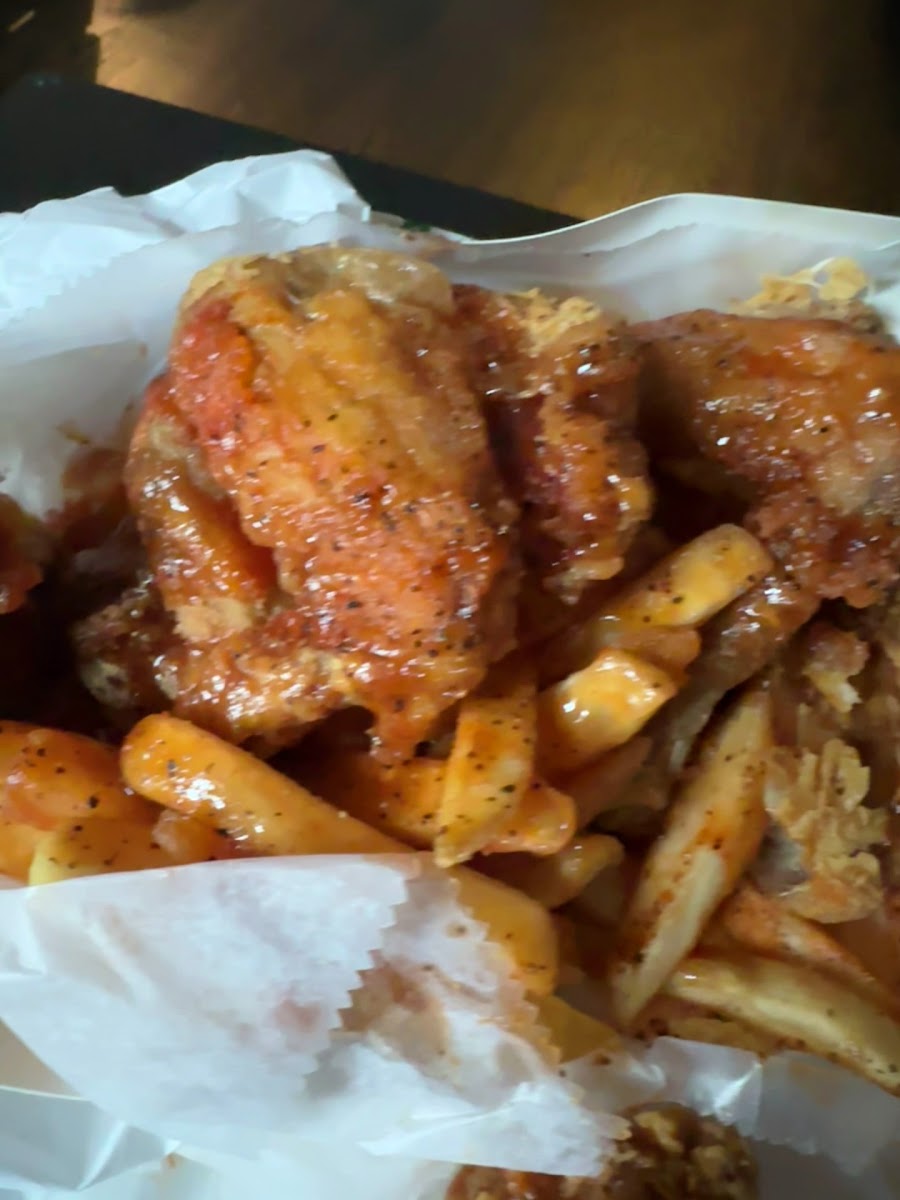 It was about a 40 minute wait for my food which is understandable because it was after a bears game. I didn’t expect too much coming into this restaurant but man I was blown away by those chicken wings and mild sauce. Some of the best chicken wings I’ve ever had. Fries were a little bland and didn’t have salt which maybe you could’ve asked for some but they put sauce on them too which made them better. Overall a great experience and I’d definitely eat here again.